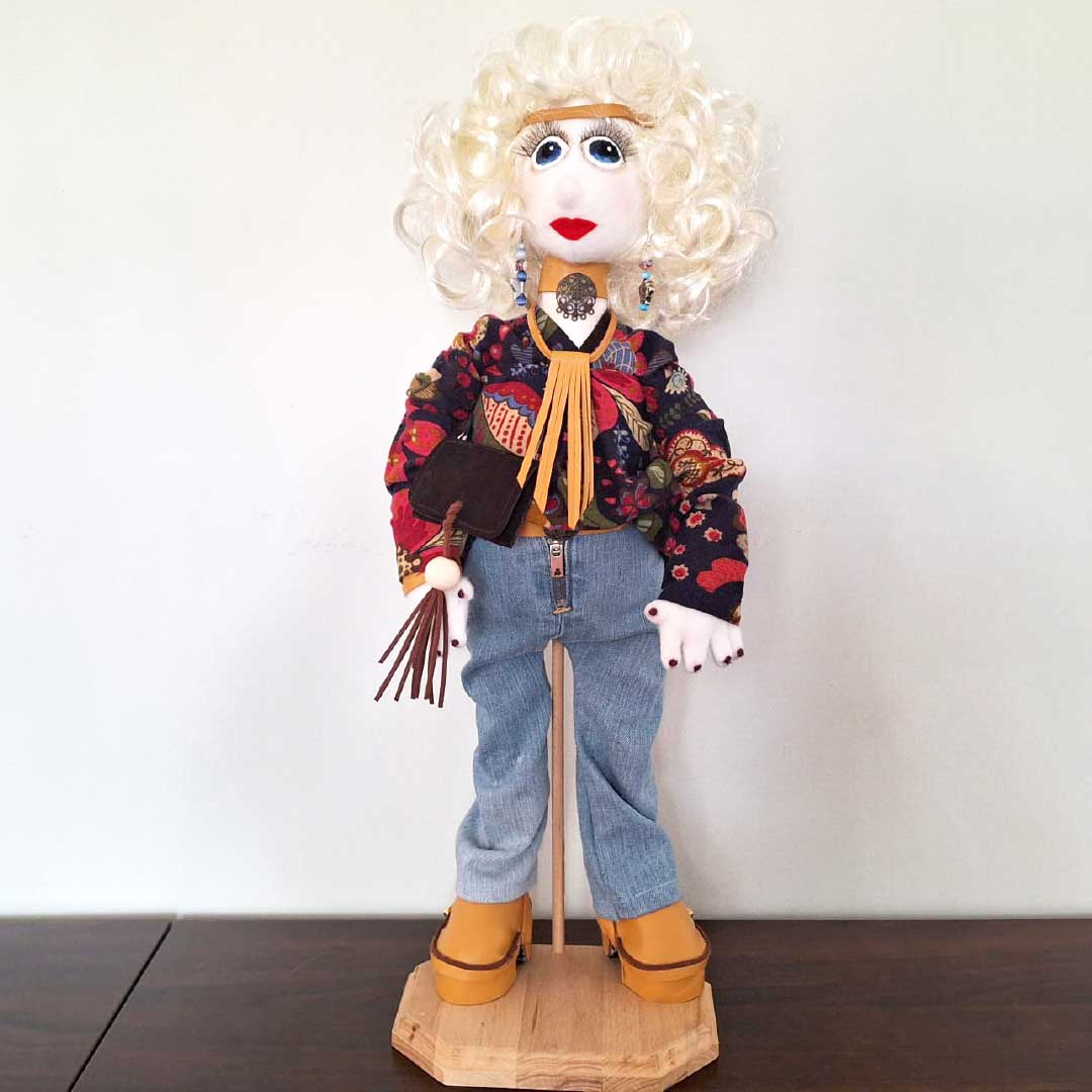 I was inspired by the free-spirited energy of the 1970s—an era of music, art, wild dreams, and living life in full color. Boho Muse is a tribute to all the adventurers, dreamers, and wanderers who believe in the beauty of being themselves. Her denim, suede boots, and untamed curls echo road trips, festival lights, and laughter shared around a campfire.